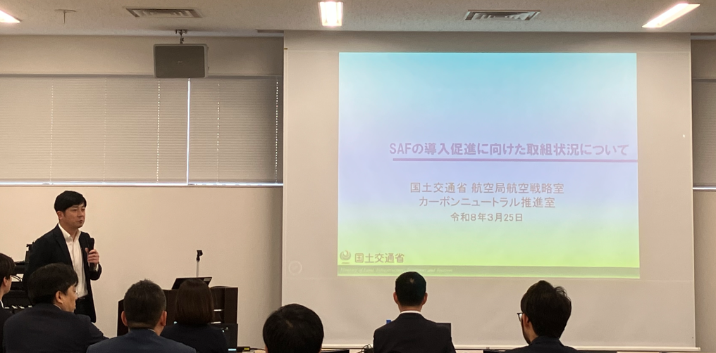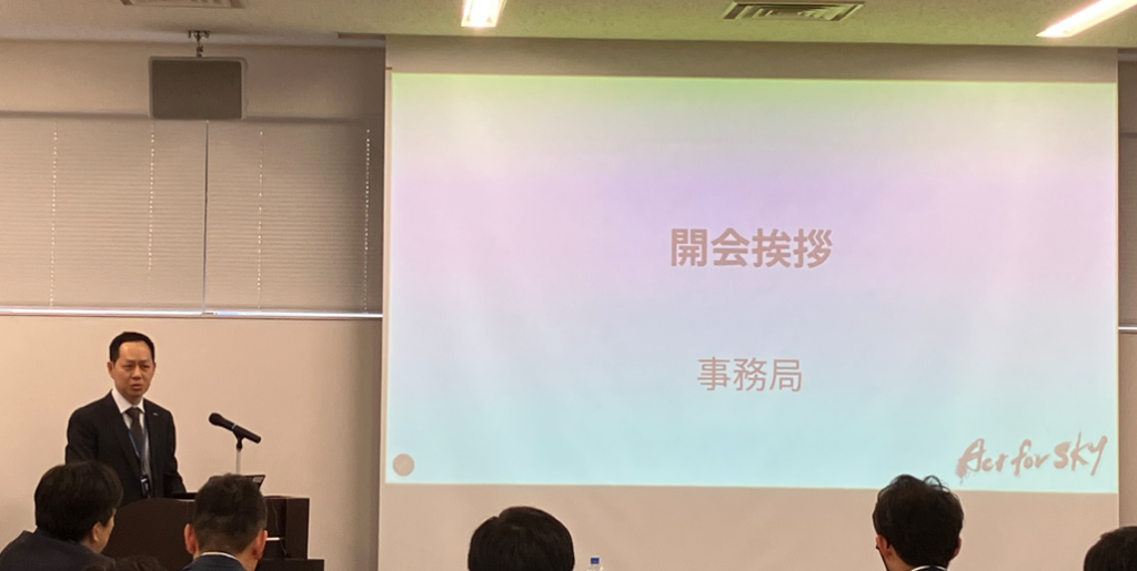 事務局よりシンポジウムレビューや、新規加入会社のご紹介、各社取り組みの事例紹介、航空局SAFの導入に向けた取組状況、